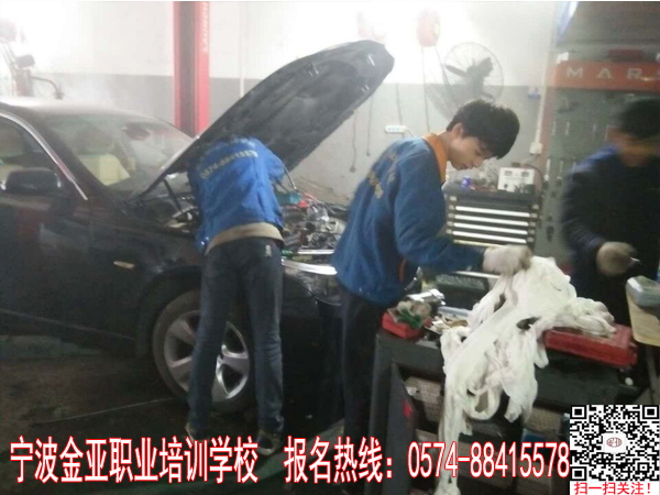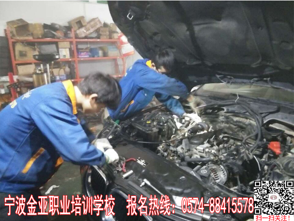 宁波金亚学校汽修专业,采用门店式教学,本校教学车型多,教练手把手指导。现场教学,学员有更多的机会进行实际操作练习,并积累经验!如图,教练正在指导学员进行发动机维修。