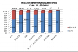 截至 2015 年底,全省共有办理使用登记的特种设备1055952台(条),其中在用 897844 台(条),暂时报停 158108台(条)。按设备种类分,具体为锅炉49793台、压力容器323366
