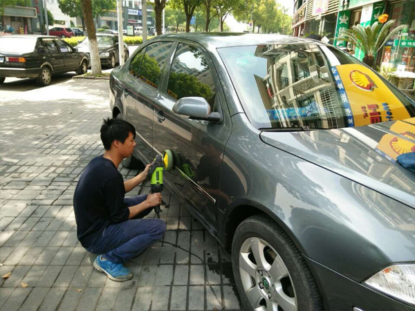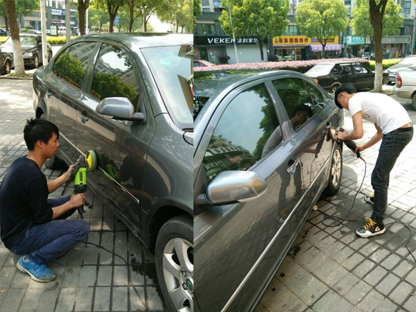4月25日金亚学校汽车美容装潢学员在进行抛光练习
