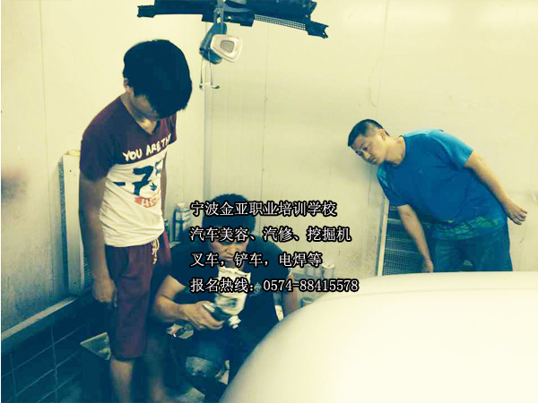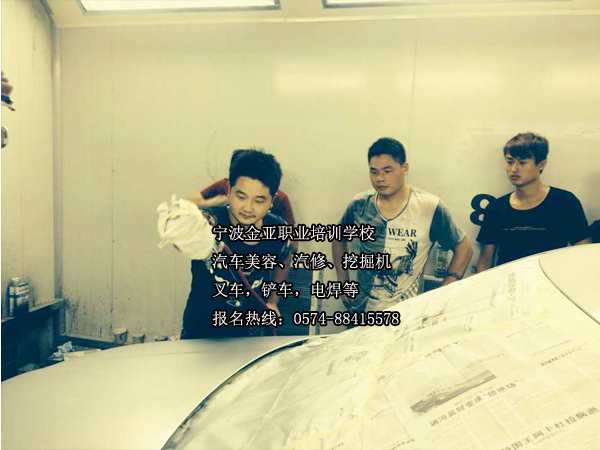 宁波金亚学校钣金喷漆专业学期短,成长快。学校教练专业从事喷漆教学,技术先进,教学质量有保障。7月28日金亚学校全车钣金喷漆教学。