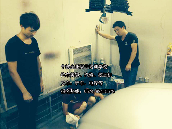 宁波金亚学校汽车美容专业短期技能培训,通过特色的门店式教学,直接面对客户的管理模式,真正培养出技术过硬,实践经验丰富,动手能力强,整体素质高的汽车美容精英,充分满足学员和企业的双向需求。学员进步更快,积累的经验越丰富。教练根据学员学习情况,让学员独立操作施工,而且每个环节都要达到能够独立操作,并且让客户满意才算合格。