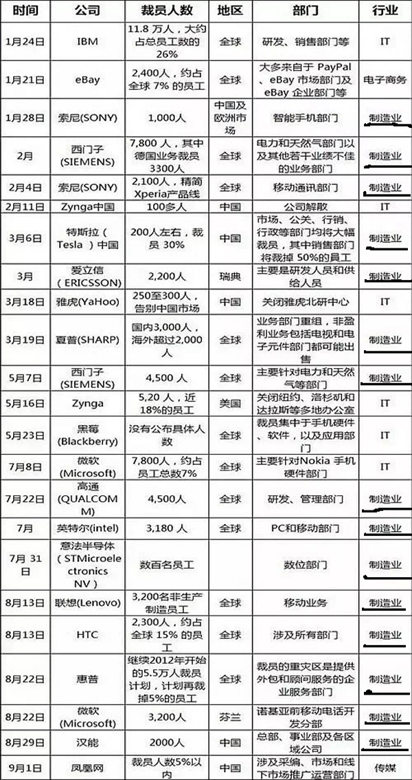 随着经济的快速发展,你还在做着普工的工作吗?你还在想着如何辞了这份薪资不高的工作吗?你是否还想着自己现在年轻,等玩够了再为自己的未来做打算吗?你还在因为没有技术就犹豫不定吗?赶紧来看看各国家大裁员的情况吧。据统计,“世界500强”榜单中,共有115所企业在2015年制定了裁员计划。2015年入选“世界500强”的177所美国企业中,有62所宣布裁员,占总数的35%。而中国大陆和香港地区的这一占比分别为9.5%和18%。