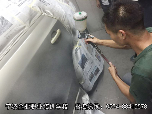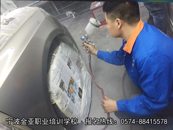 宁波金亚学校给广大社会各界朋友提供一个学习技能的机会。学校本着把 “需要工作的人”培养成为“工作需要的人” 教学态度,着重培养学员的实际动手操作能力,让学员毕业即可上岗。如下图,学员自己动手进行喷漆。宁波金亚学校汽车美容专业,打破传统只围观不实践和实践车辆单一的教学模式,采用教练手把手指导,利用客户的车子进行实践教学,让学员多动手多实践多练习。