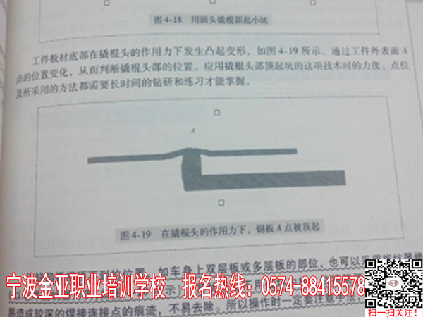 工件板材底部在撬棍的作用下发生凸起变形。通过工作外表面着力点的位置变化,从而半段撬棍头部的位置。应用撬棍头部顶起的这项技术时的力度、点位及时采用的方法都需要长时间的钻研和练习才能掌握。