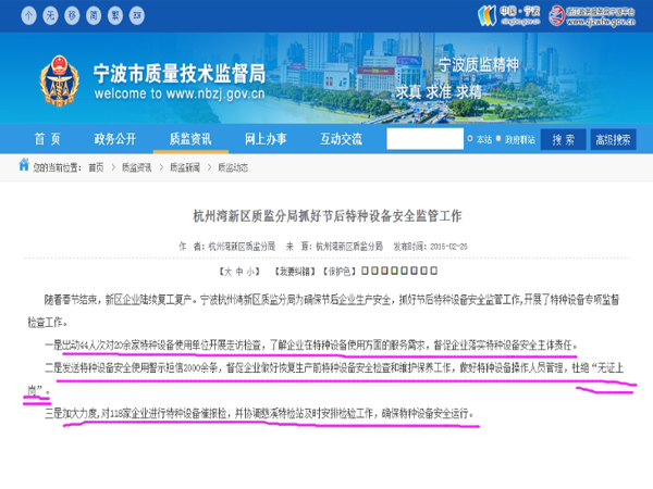 随着持证上岗的呼声越来越热,各地也纷纷作出相关策略。以宁波为例。年初,宁波各地也分别就特种设备以及操作人员作出检查。如下图是宁波各地作出的检查结果。