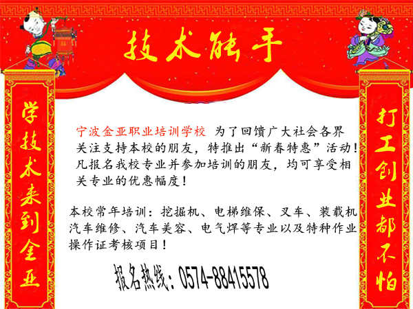 浙江哪个汽修培训学校好?选择宁波金亚汽车专修学校。学校以教授技术为主,学员就业为目的。 浙江哪个汽修培训学校最大?还是宁波金亚汽车专修学校。学校有实践操作场地约50亩,教学设备先进齐全。 浙江汽车专修培训学校哪个最专业?我们是专业的汽车专修学校。 我们教学专业,让你学到真技术;我们管理专业,让你学会做人处事;我们服务专业,让你就业安心踏实。 浙江省哪个汽车专修培训学校最正规?宁波金亚汽车专修培训学校,目前我校已经成为浙江省退伍军人定点挖掘机培训学校。 想学好汽修,想要好工作就来宁波金亚汽车专修培训学校。